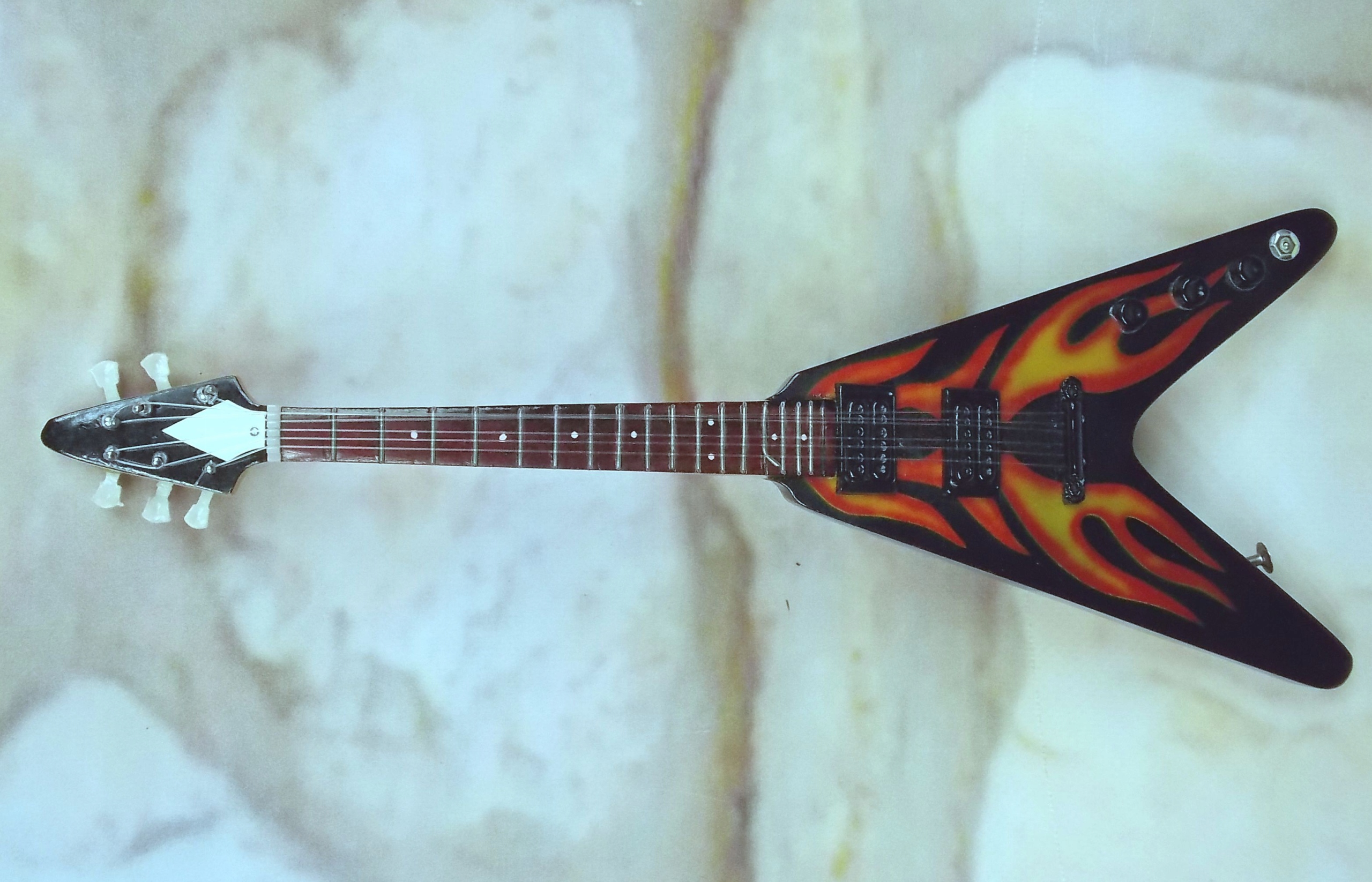 Колекційна міні-гітара FanMerch Metallica James Hetfield Hot Rod Flames V