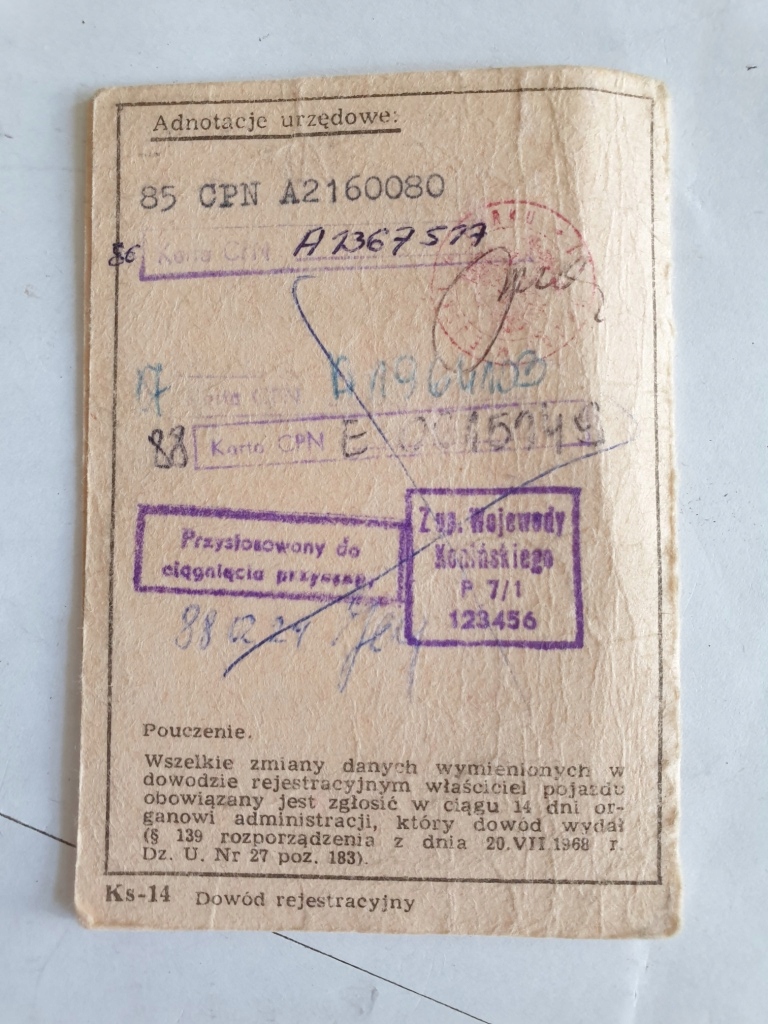 НА ДРУГИХ АУКЦИОНАХ У МЕНЯ ЕСТЬ ДРУГИЕ СВИДЕТЕЛЬСТВА О РЕГИСТРАЦИИ ОТ SYRENA WARSZAWA ŻUKA ZAPOROŻCA MZ SHL SOKÓŁ ZASTAWA MERCEDES, FIAT WSK И МНОГО ДРУГИХ ИНТЕРЕСНЫХ МОДЕЛЕЙ.