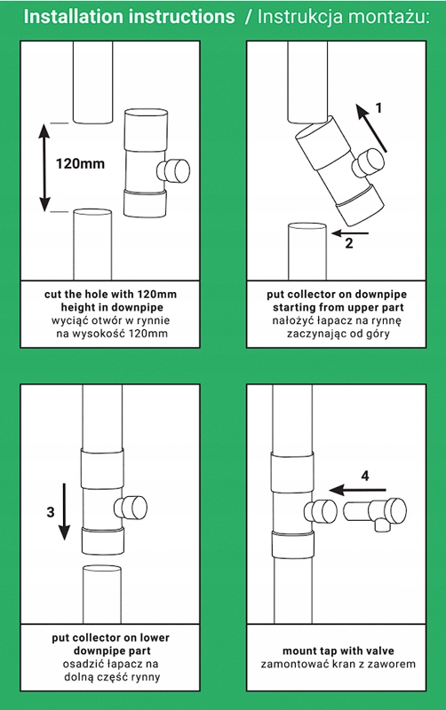 Просматривая «КОЛЕКТОР, ДОЩОВЛЮВАЛЬНИК ВІД ЖОЛОБИ ДО ДОЩОВІЙНИЦІ, 100 мм», вы можете быть уверены, что данный товар из каталога «Сборщики» будет доставлен из Польши и проверен на целостность. В цене товара, указанной на сайте, учтена доставка из Польши. Внимание!!! Товары для Евросоюза, согласно законодательству стран Евросоюза, могут отличаться упаковкой или наполнением.