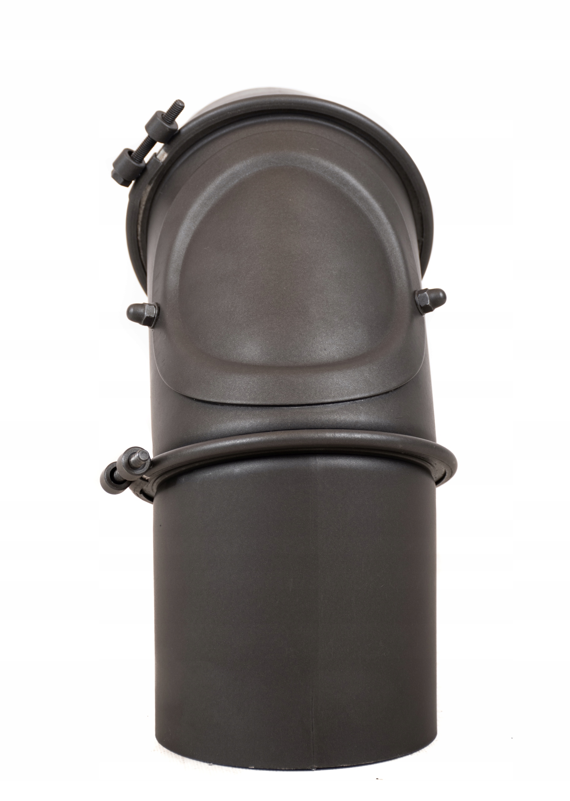 позволяет выполнить соединение под углом 90°. Благодаря использованию специальных зажимов колено плотно прилегает, а его регулировка осуществляется легко и точно. Колено имеет контрольный элемент, с помощью которого можно осуществлять периодический осмотр и очистку. Колено предназначено для отвода выхлопных газов от печей, каминных топок и других твердотопливных отопительных приборов.