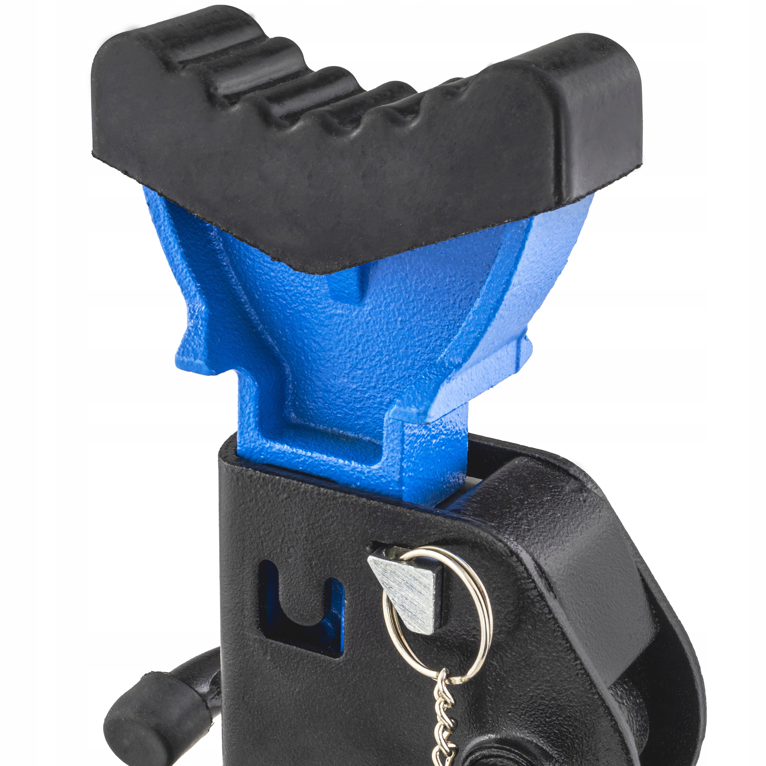 Специальный дополнительный замок в виде штифта защищает храповой механизм от непреднамеренного опускания опорной стойки. Штифт оснащен стальным тросом, прикрепленным к корпусу эстакады, что предохраняет его от потери.