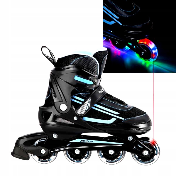 Закрытие обуви двухсекционной пряжкой, липучкой и шнурками обеспечивает максимальную безопасность во время езды, а тормоз из ударопрочного полипропилена высочайшего качества обеспечивает безопасную остановку даже на относительно высокой высоте. скорости. Дополнительным преимуществом являются светящиеся светодиодные колеса, благодаря которым нас видно издалека в темное время суток.