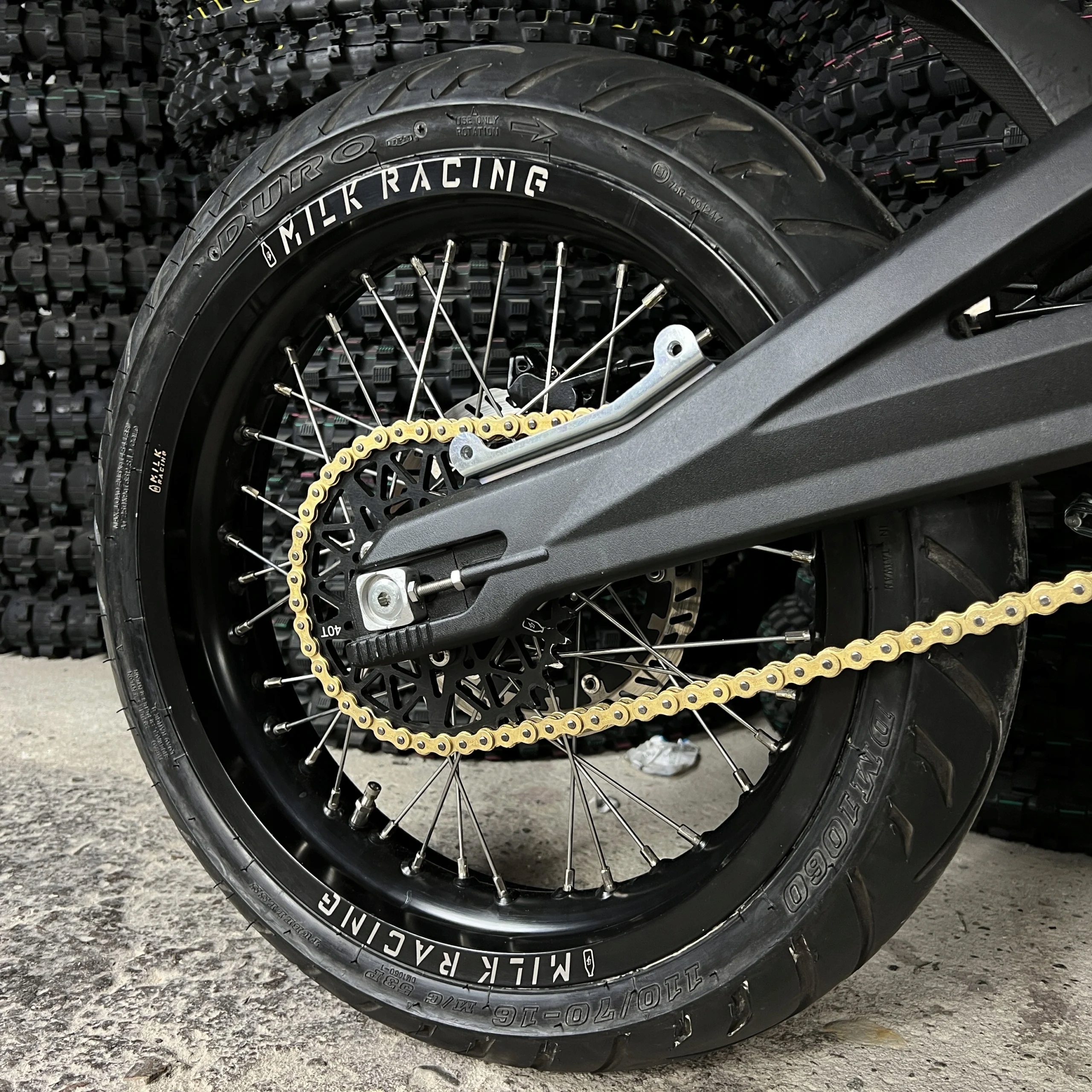 Opsi: Преимущества набора Supermoto (передние 16 "x2,15" /2,5 " + задние 16" x2,15 "/2,5"/3.00") 1. Самая широкая ширина обода к колесам, адаптированной к уличной поверхности, доступной на рынке. DM1060 110/70 В задней части. Устойчивая к коррозии, чем алюминий), в сочетании с 3-летним моделью спиц, создайте гоночные колеса, достаточно сильные, чтобы выдержать больше, чем то, что может нести велосипед Sur-Oron. Колеса всегда оснащены инструментами, запасными спицами, ключом к спицам, внутренней трубкой, кольцом и блоком обода - вам не хватает только шины. Если вам нужны 100% колеса Plug & Play, мы предлагаем сборку шин в качестве стандартного предложения. Колеса готовы ездить прямо из коробки.