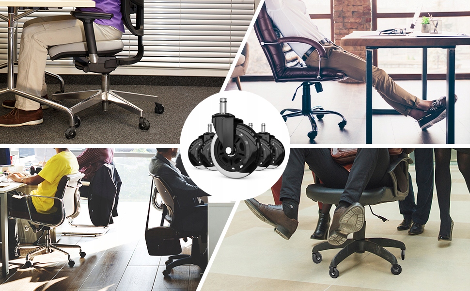 Ваши офисные стулья будут выглядеть более привлекательными, если вы используете эти водительские колеса. Замена наших колес не требует использования инструментов. Просто вытащите старые колеса с основания стула, скользите в оправке новых кресевых колес в гнездо, и это готово - это занимает 10 минут.