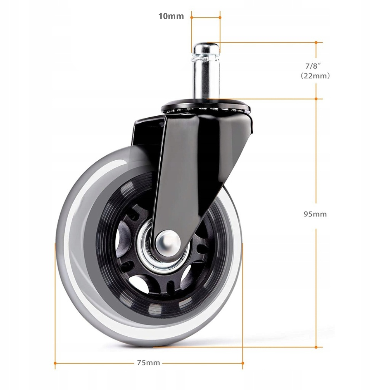 ▶ Колеса были разработаны с учетом максимально возможной универсальности. Благодаря этому мы получили модель, подходящую для офисных стульев, вращающихся стульев, игровых стульев, табуретов, мебели и т. д.