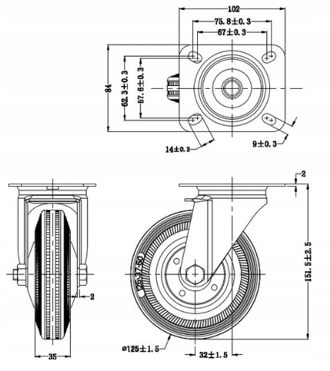 Ротальные колеса 125 мм крутящие колеса для 400 кг тележок h1>