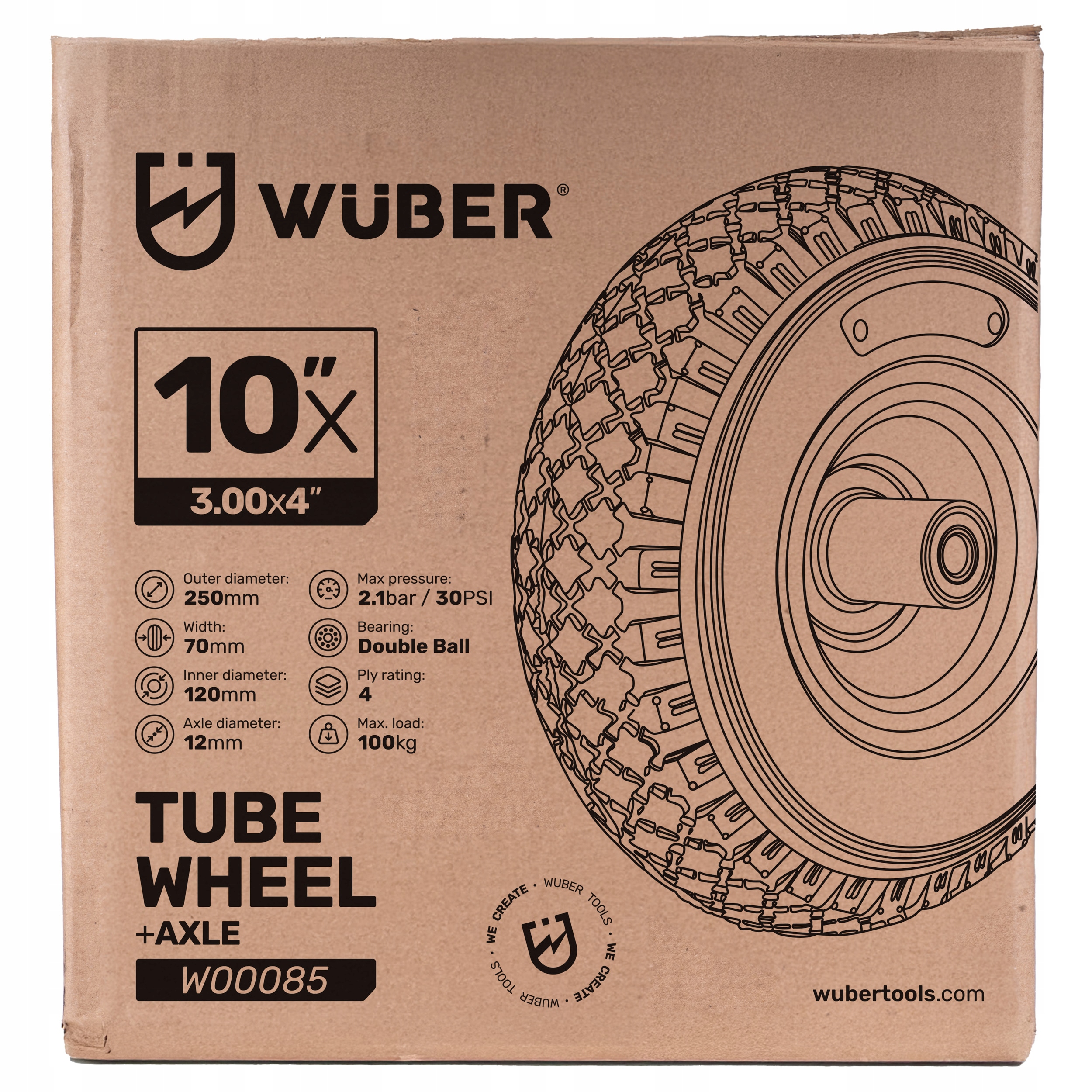 Колесо колесо для тачки 10 "3,00x4 4pr 100 кг сильна с трубкой, нагретой Wuber
