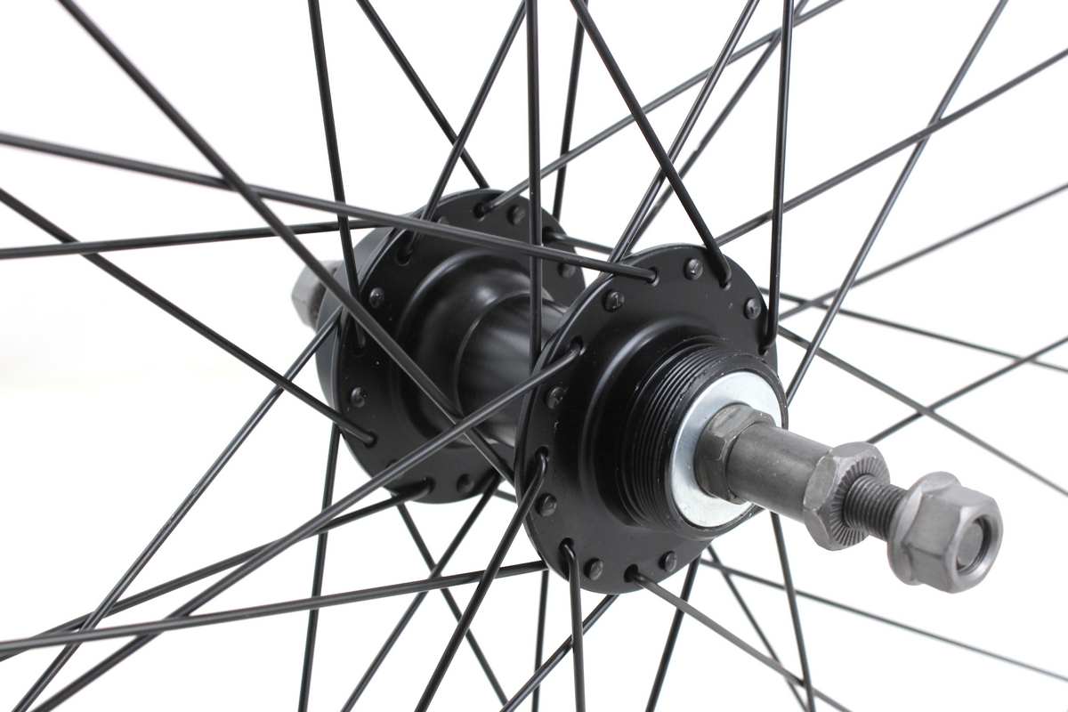 - оснащен ступицей Shunfeng, корпус которой выполнен из алюминия, что предотвращает появление ржавчины в дальнейшем. Центр состоит из цельных шарикоподшипников, установленных на стальных чашках, и прочной закаленной жесткой оси с конусами вращения. Все это имеет 36 сплошных черных спиц. Эта сумма гарантирует прочное колесо после использования спиц. После установки модель катится плавно, тихо и легко.