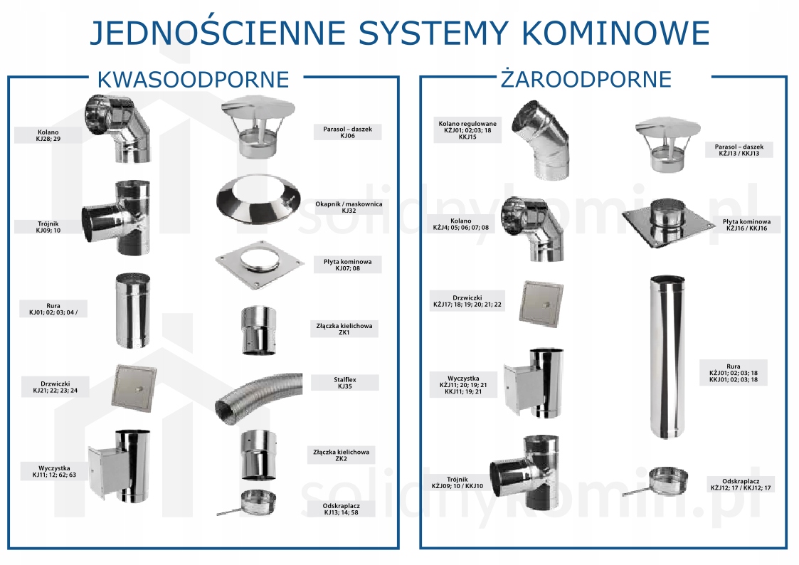 Преимуществом продукта является быстрый и простой монтаж, а также гладкая поверхность стен, что приводит к снижению сопротивления воздуха и ограничению отложения сажи. Одностенная кислотостойкая дымоходная система доступна в круглом и овальном исполнении.