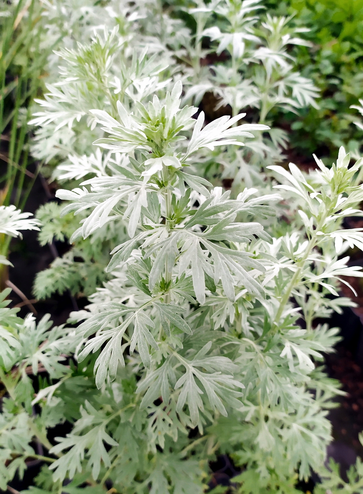 Серебряный -целый волосатый многолетний, приятный на ощупь с сильным характерным запахом. Это может вырасти до 1 м в высоте. Желтые цветы появляются на верхушках побега.