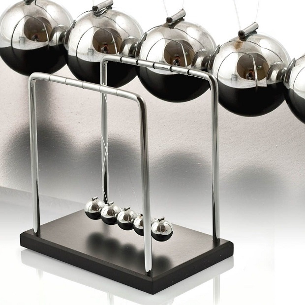 Самым изысканным гаджетом на столе дорогого президента может быть только Колыбель Ньютона. Пять стальных шариков, подвешенных на веревочках, не только красиво смотрятся, но и дают гостям президента четкий сигнал о том, что парень, сидящий в модном кресле, перфекционист во всех деталях. В бизнесе он действует по четко определенным правилам и осознает, что каждое действие вызывает определенную реакцию. Точно так же, как закон сохранения импульса и энергии, который иллюстрирует Колыбель Ньютона.