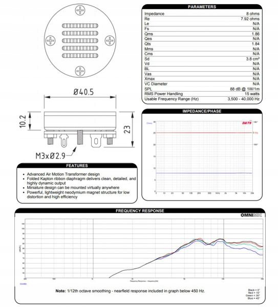 - Сложная каптоновая ленточная диафрагма обеспечивает чистый, детальный и очень динамичный звук.