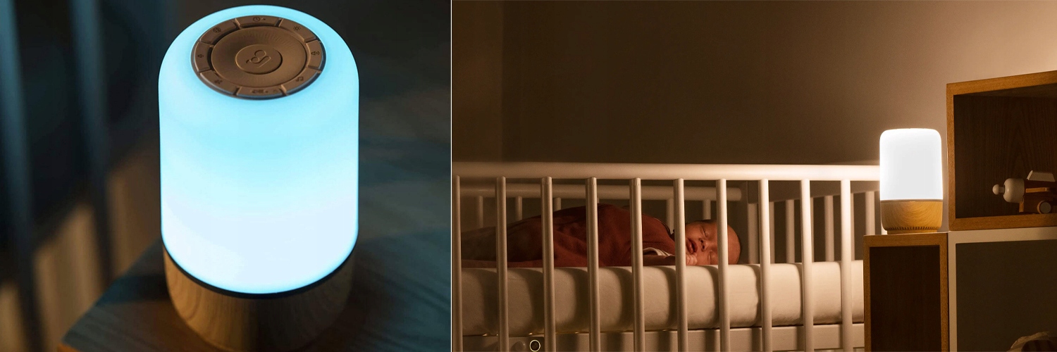 Динамика с усовершенствованной аудиосистемой имеет до 20 предварительно загруженных музыкальных дорожек и расслабляющие звуки. Лампа излучает мягкий свет, цвет которого можно выбрать с помощью приложения. На выбор предлагается весь спектр цветов. Продукт можно запустить в любое время, а также можно автоматизировать для запуска в фиксированное время. Благодаря этому он будет использовать звук и свет, чтобы помочь ребенку связать события, ведущие как к сну, так и к пробуждению, что учит его ритму дня.