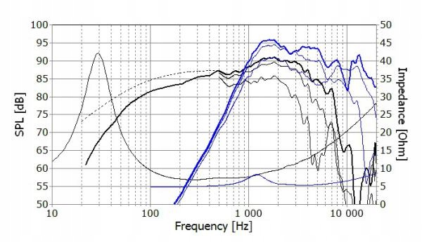 Диафрагма среднечастотного динамика действует как волновод (рупор) для высокочастотного динамика.