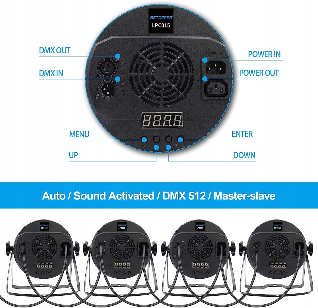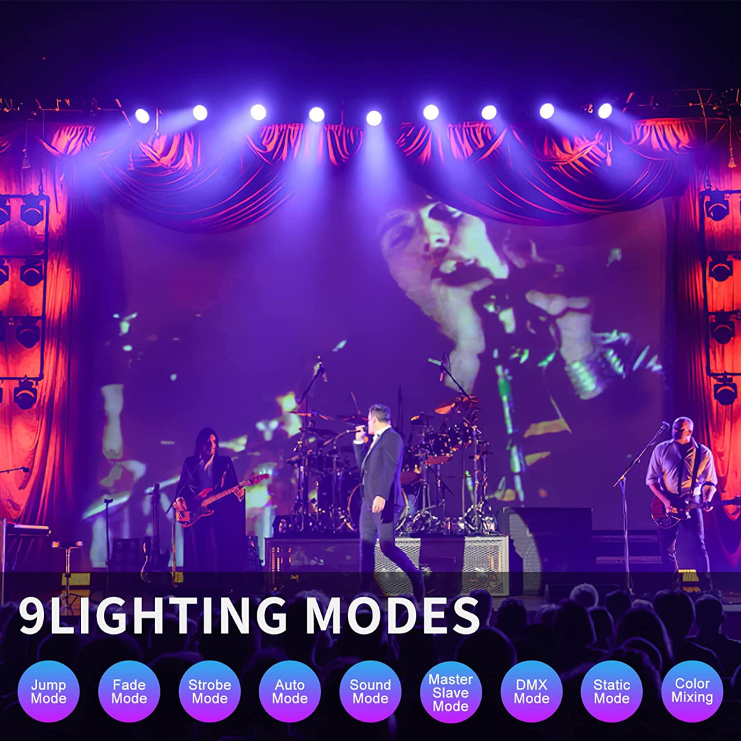 4 режима управления: Автоматический/Управление музыкой/DMX512-3/7CH/Master-Slave, вы можете легко использовать их как для начинающих, так и для профессиональных ди-джеев.