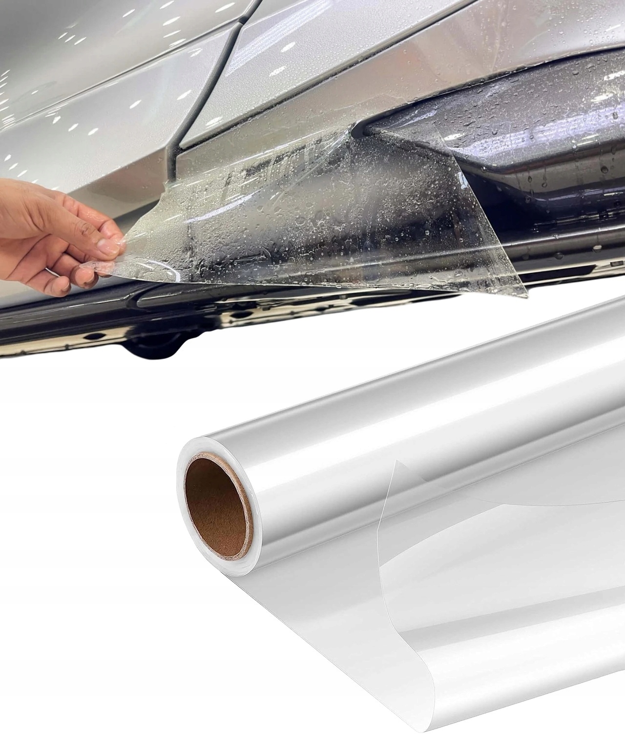 Бесцветная автомобильная пленка с самоклеящимся клеем. Данный вид продукции подходит для защиты элементов и предметов, подверженных царапинам при повседневном использовании. Фольга устойчива к погодным условиям, поэтому ее можно использовать внутри и снаружи помещений. Фольга также используется в других областях, помимо автомобильной промышленности: стеклянные поверхности, мебель, двери, предметы повседневного обихода или для защиты поверхностей от царапин животных. Элемент, покрытый фольгой, существенно защищает покрытие от царапин, потертостей, сколов, коррозии, а также снижает последствия ударов, напр. в узких гаражах или парковках. Фольга состоит из 3-х слоев, перед нанесением один слой снимается с клеевой поверхности. Вторая защитная пленка служит защитой во время нанесения, чтобы избежать царапин при надавливании ракелем, однако удаление второго слоя перед нанесением повысит его пластичность. Фольгу следует формовать с помощью термофена при нанесении на поверхность, отличную от прямой, однако пластичность этого типа материала ограничена, он не предназначен для нанесения сложных элементов. Фольгу следует наносить «мокрым» способом в соответствии с инструкцией по монтажу далее в описании. Фольгу также можно наносить на окна автомобиля или дома. Стекло, покрытое фольгой, становится более твердым и устойчивым к вибрациям и нагрузкам в оконных рамах, защищает и укрепляет стекло. В случае разбития стекла поверхность стекла защищает от разлета стекол и осколков, что влияет на безопасность. Фольга имеет съемный клей, если вы хотите удалить ее с поверхности. Делать это следует с помощью высокотемпературной сушилки или термопистолета, а при наличии остатков клея использовать экстракционную нафту.