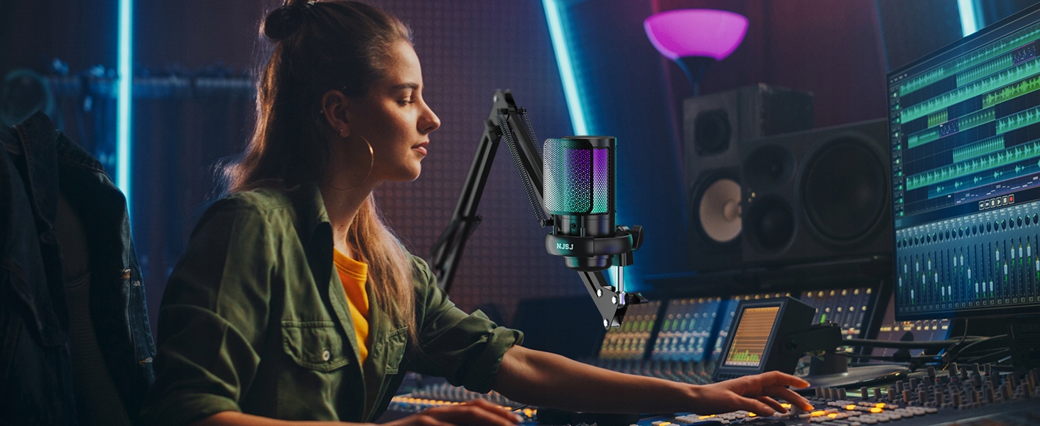Микрофон NJSJ ME6S для ПК имеет двухцветную RGB-подсветку с цветовым градиентом, мягкий свет и минималистичный дизайн, что делает вашу прямую трансляцию более привлекательной.