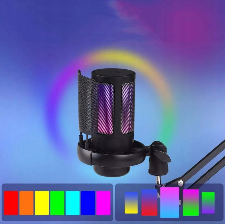 ЦВЕТНОЙ КОНДЕНСАТОРНЫЙ МИКРОФОН RGB С РАЗЪЕМОМ USB И КНОПКОЙ ОТКЛЮЧЕНИЯ ЗВУКА