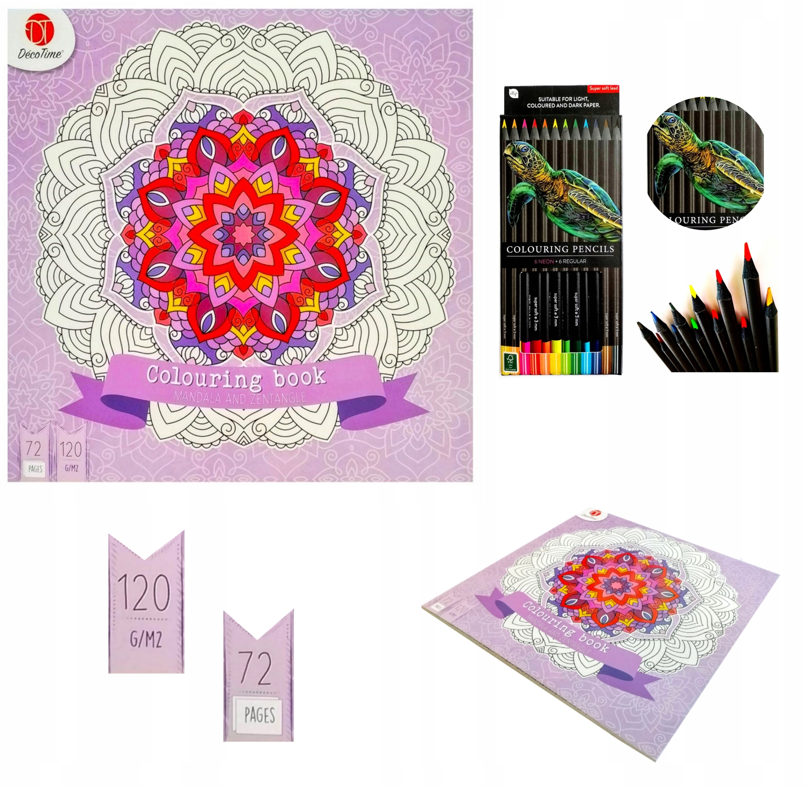 KOLOROWANKA MANDALA ANTYSTRESOWA DLA DOROSŁYCH + KREDKI OŁÓWKOWE NEONOWE