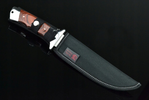 Ручка ножа была изготовлена из металла и деревянной облицовки.