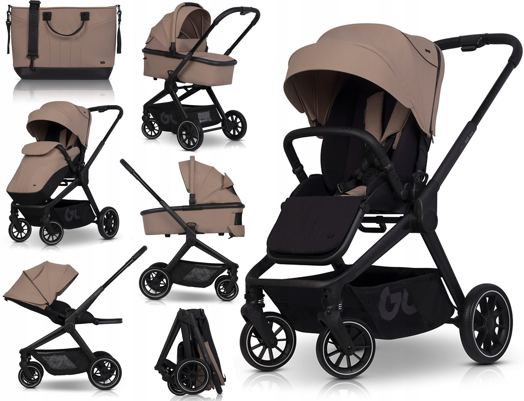 КОЛЯСКА + СУМКА ДЛЯ ГОНДОЛА СИДЕНЬЕ-КАБРИОЛЕТ 3 в 1, БОЛЬШИЕ КОЛЕСА 0-22 КГ