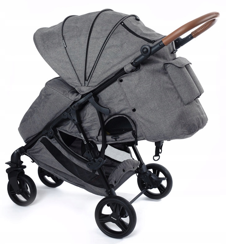 Коляска имеет просторное сиденье, что делает ее удобной для детей. К его неоценимым преимуществам также относятся регулируемая спинка, подставка для ног, регулировка ручки и солнцезащитный козырек с фильтром UFP50+.