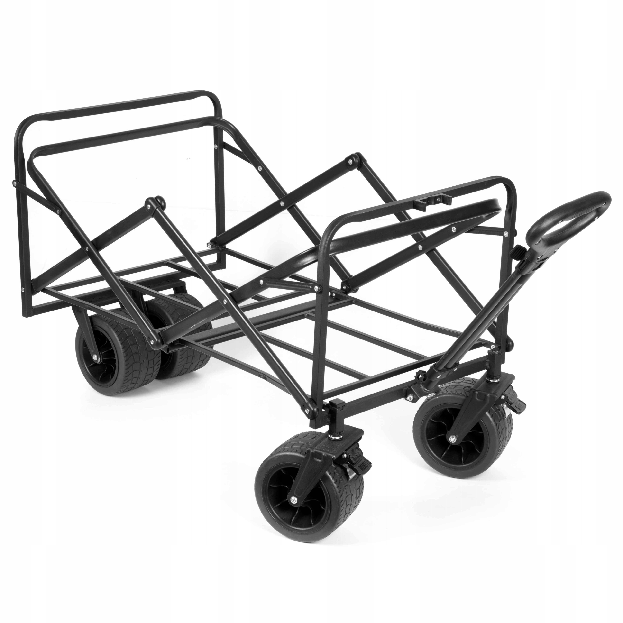 Продукт изготовлен из высококачественных материалов, благодаря которому он выдерживает нагрузку до 110 кг. Он имеет прочную металлическую структуру и оболочку из прочного и водонепроницаемого пластика. Удобная ручка позволяет бесплатно транспортировать тележку, включая нагрузку, заполненную нагрузкой. Сплошные колеса вращаются на 360⁰, что обеспечивает плавное вождение, даже при значительной нагрузке. Колеса легко покрывают даже песчаные поверхности!