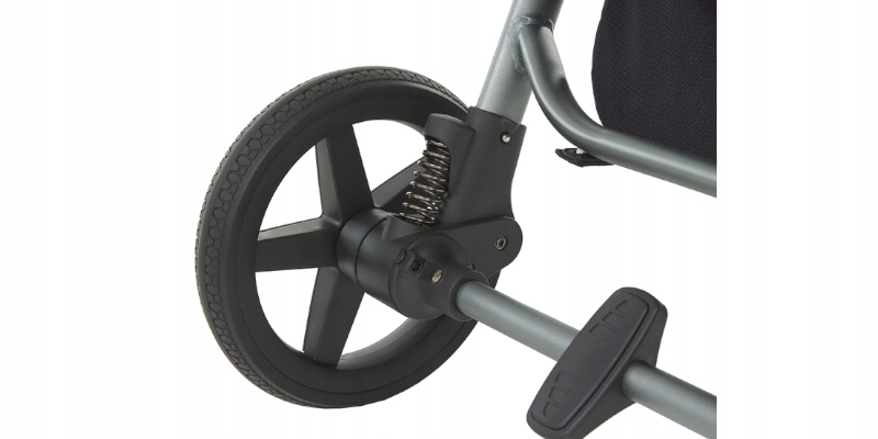 Твердые колеса, отвечающие за отличную управляемость, изготовлены из резины и заполнены гелем, что делает их абсолютно необслуживаемыми и безотказными. Коляска также оснащена мягкой амортизацией, которая эффективно снижает удары при ходьбе по плохим поверхностям.
