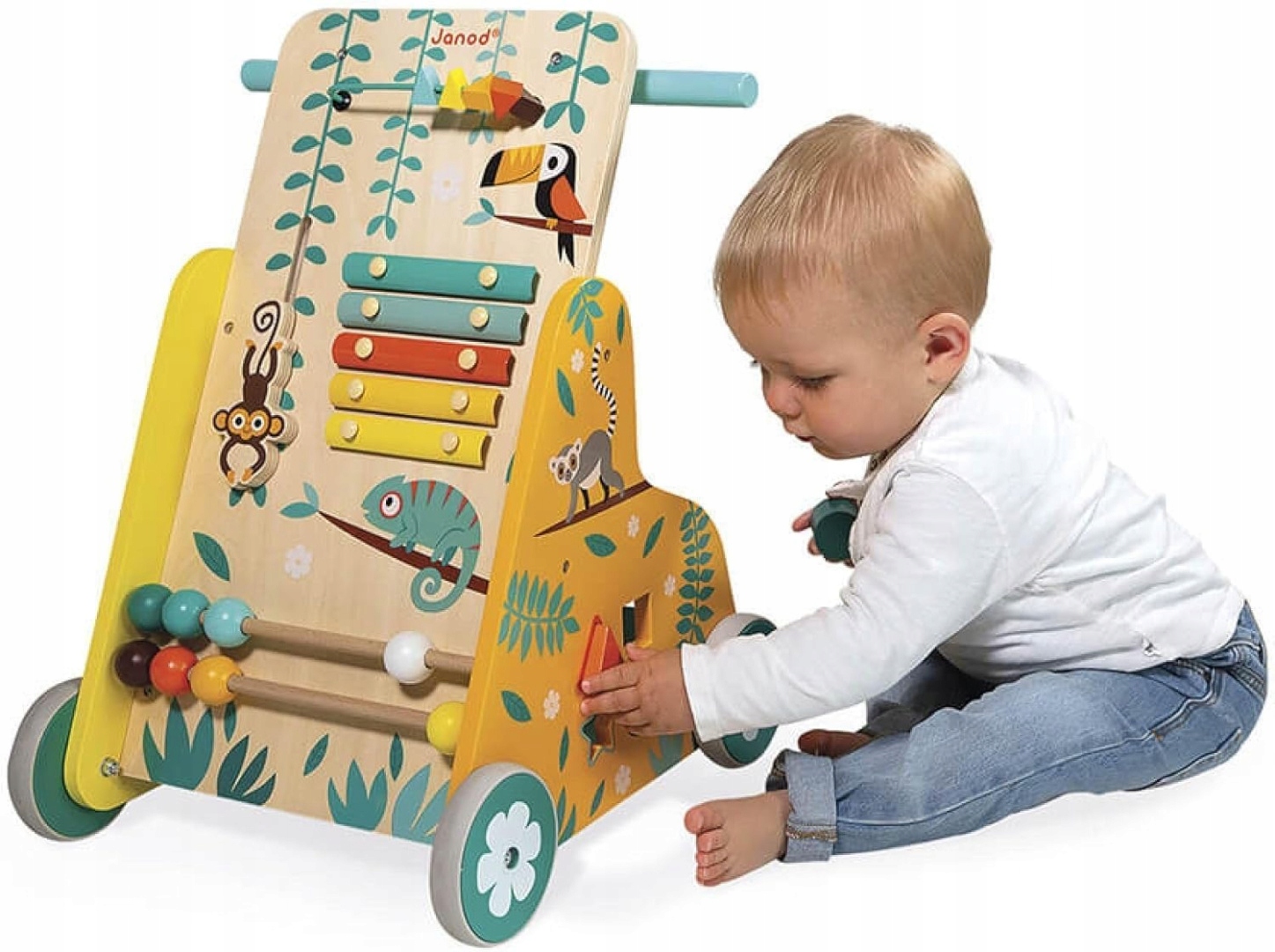 - Научитесь ходить: это ваш лучший спутник, который поможет вам сделать первые шаги. Эта красивая деревянная коляска, сертифицированная FSC, поможет малышам в возрасте от 12 до 36 месяцев безопасно научиться держать равновесие. Благодаря резиновым колесам полы будут защищены, уши будут сохранены, и ребенок сможет наслаждаться спокойной свободой.
