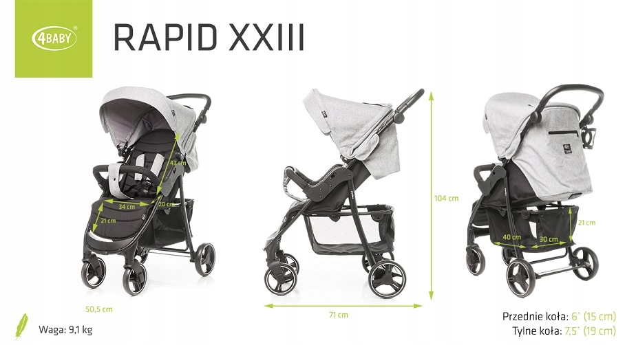 RAPID XXIII — это обновленная версия культовой модели коляски 4BABY, которая уже много лет зарекомендовала себя как в городе, так и в полевых условиях. \Текущая версия адаптирована для детей весом до 22 кг.
