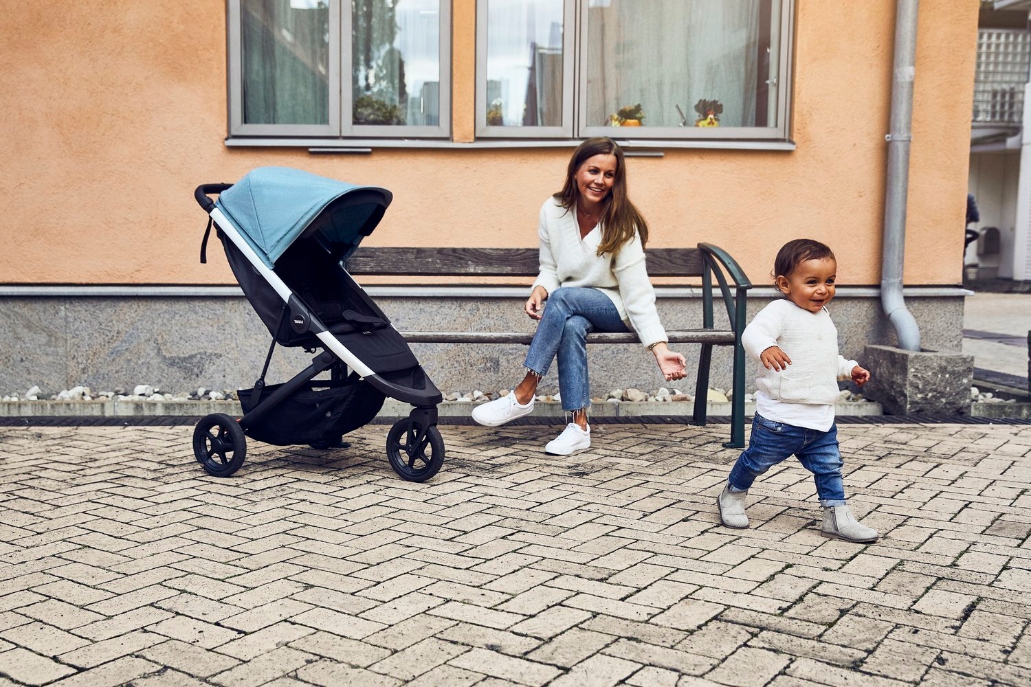 Подставка для ног позволяет детям старшего возраста самостоятельно садиться в коляску