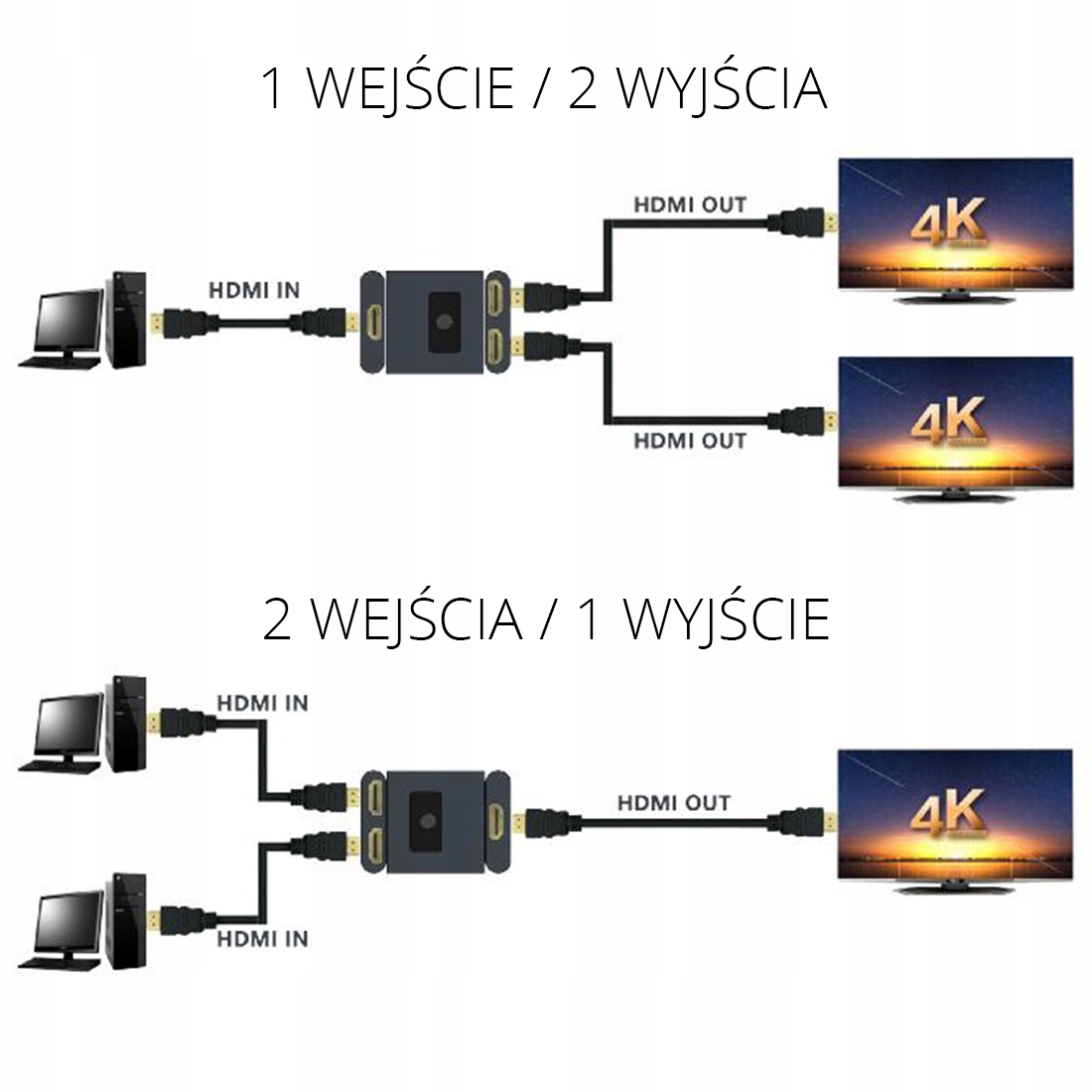 Разветвитель/разветвитель HDMI 2x1 1x2 SPH-BIDHD02, 1080p
