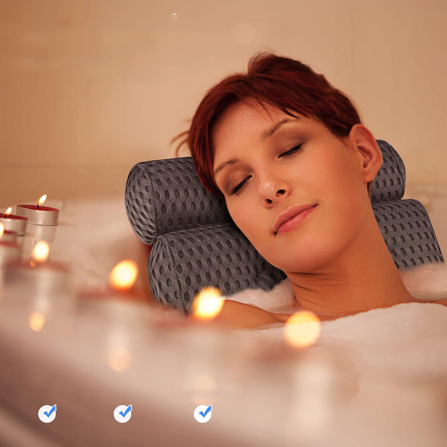 ✅ Вакуумные присоски Подушка для ванны с 6 мощными вакуумными присосками, которые можно оставлять на любом месте. гладкая поверхность, их можно держать в ванне, не скользя, при использовании в качестве спинки и подголовника. Поддерживайте голову и шею, позволяя вам наслаждаться спокойной и расслабляющей ванной. Чтобы предотвратить размножение бактерий на присосках, своевременно сушите их после использования.