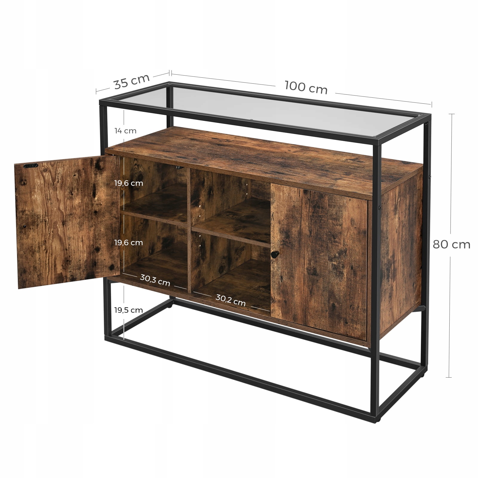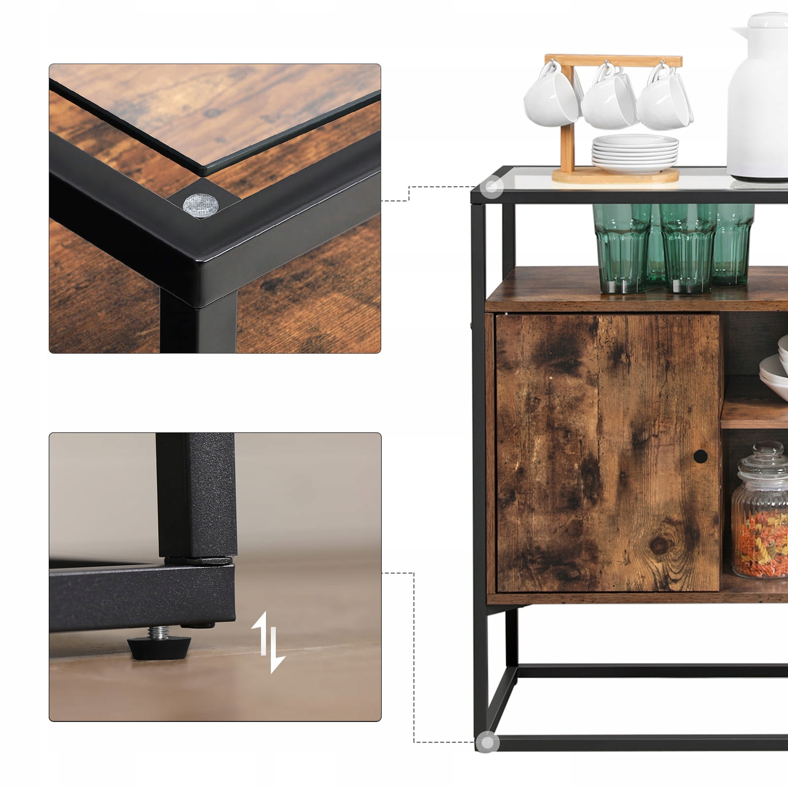 Комод изготовлен из высококачественных материалов - закаленного стекла, металла с порошковым покрытием и меламиновой плиты, обеспечивающей большую устойчивость к царапинам и воде.