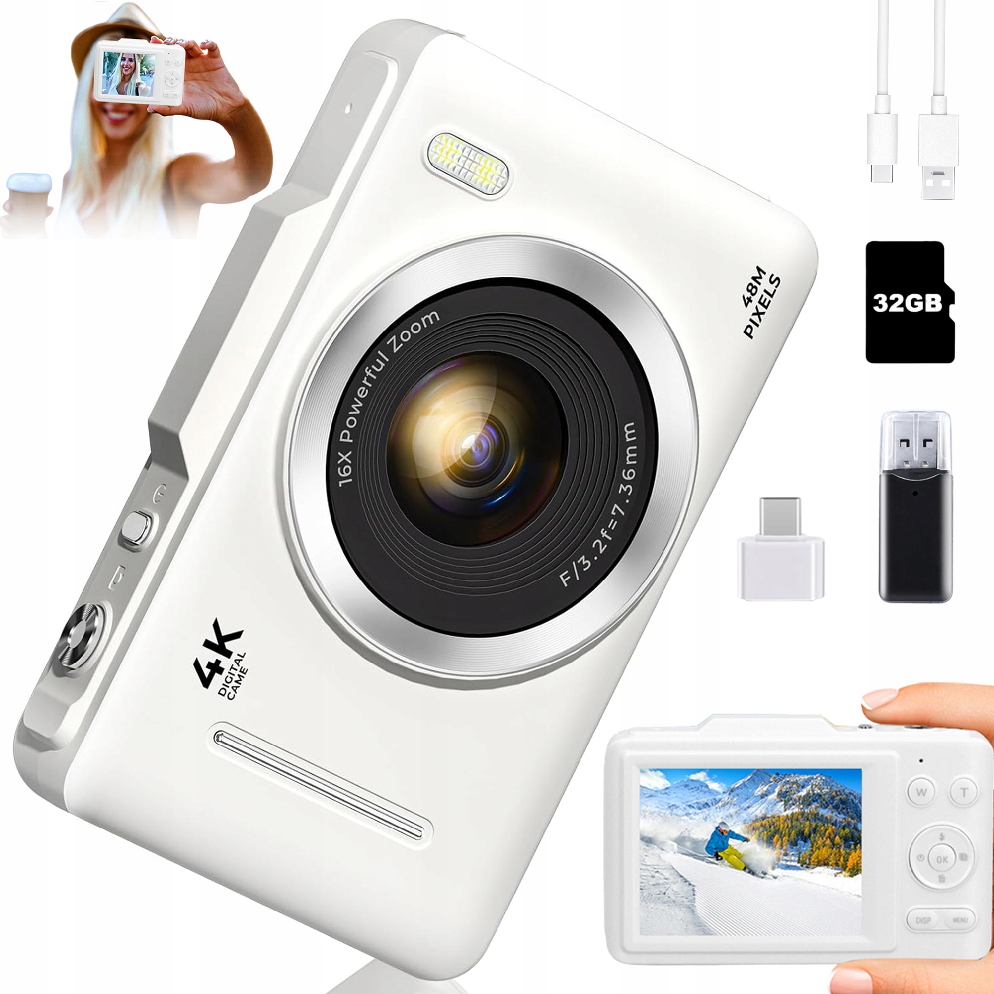 Просматривая «Compact HD 4K AutoFocus Digital Camera 48MP 16x 32G Portable», вы можете быть уверены, что данный товар из каталога «[rubrica_name]» будет доставлен из Польши и проверен на целостность. В цене товара, указанной на сайте, учтена доставка из Польши. Внимание!!! Товары для Евросоюза, согласно законодательству стран Евросоюза, могут отличаться упаковкой или наполнением.