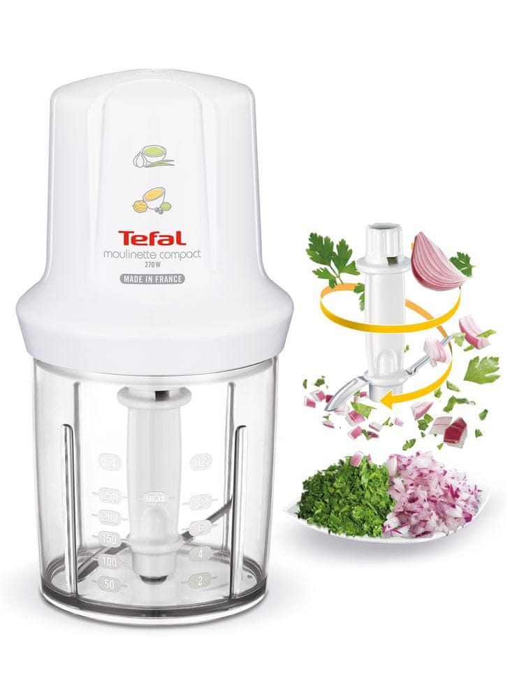 - Мини-измельчитель Moulinette Compact оснащен двумя острыми лезвиями и мощным двигателем мощностью 270 Вт, что делает его работу эффективной. Идеальный результат обеспечит простая система давления – все ингредиенты будут идеально измельчены.