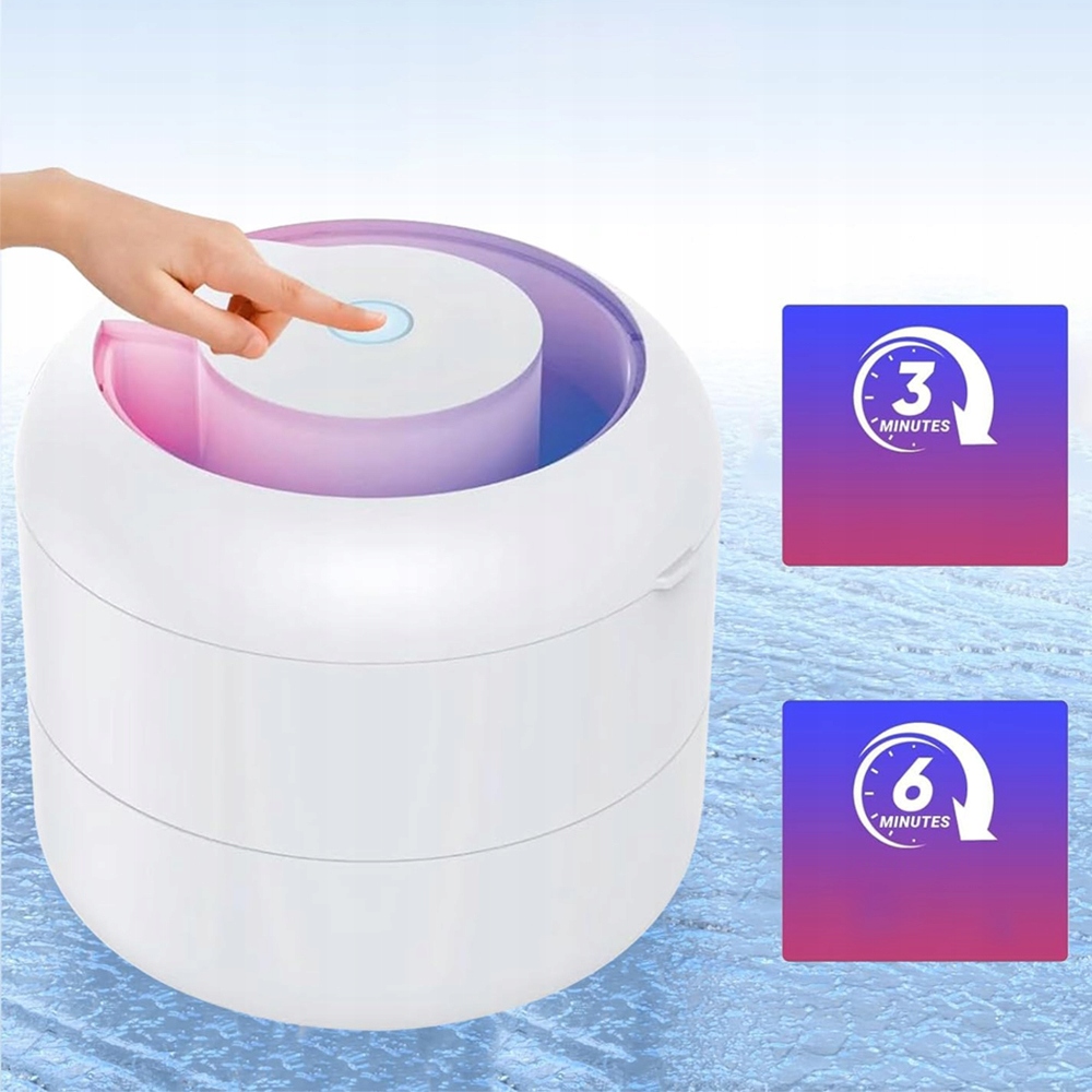 Размеры этого ультразвукового очистителя составляют 10,5 x 11,5 см, что делает его компактным и портативным, поэтому вы можете использовать его дома или брать с собой для очистки в дороге.