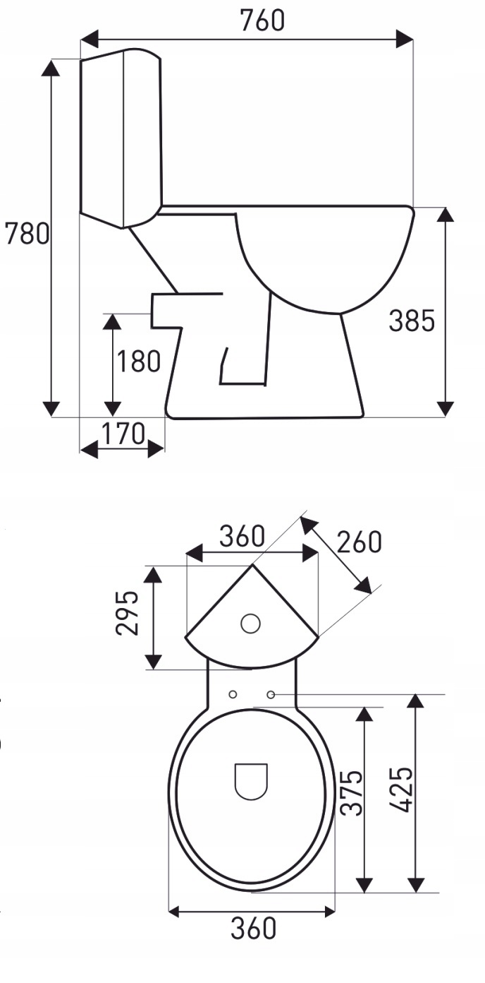 В комплекте: компактный унитаз, белое антибактериальное сиденье для унитаза