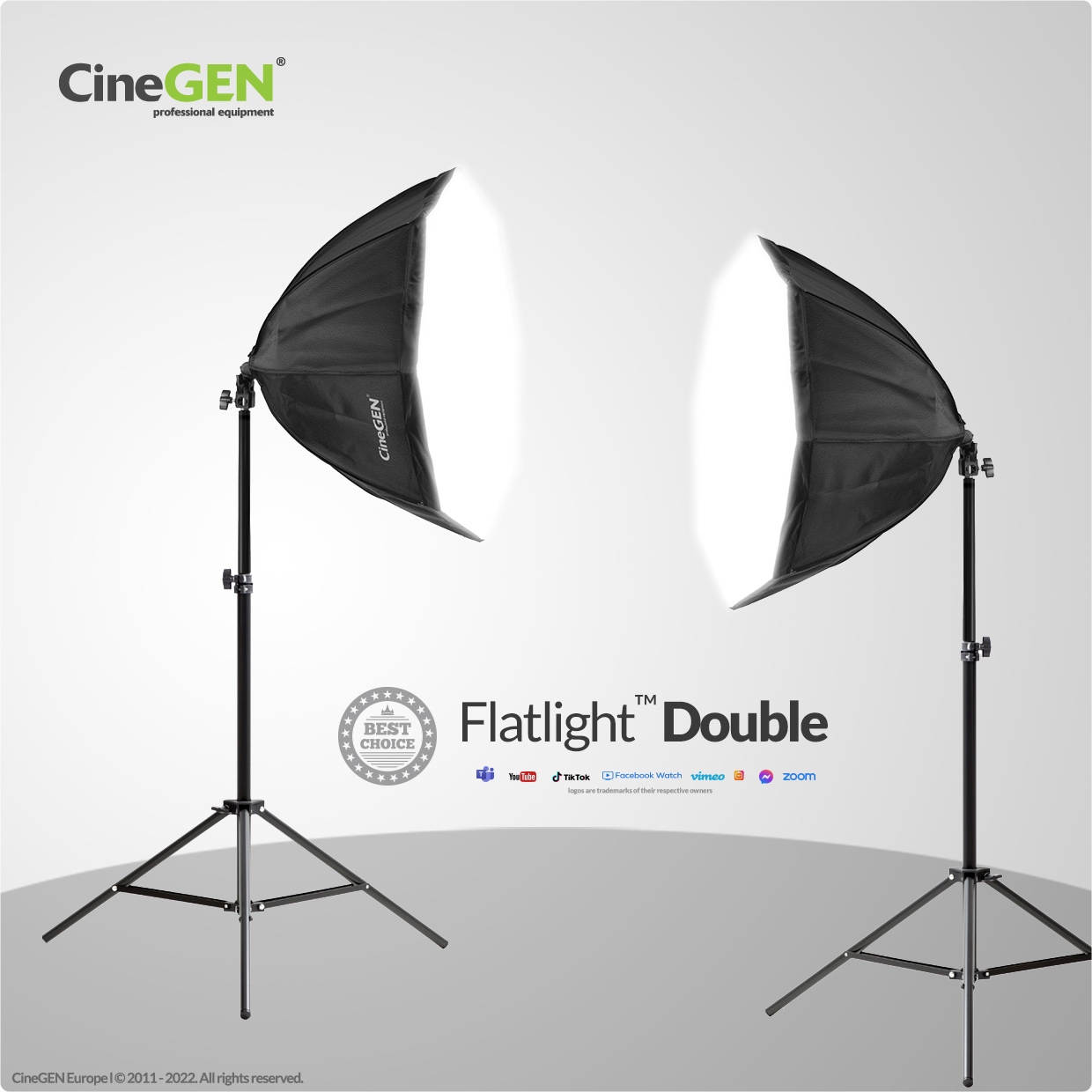Двойной набор ламп непрерывного света с восьмиугольными софтбоксами является отличным источником мягкого света приятной интенсивности. Внедрение комплекта FlatLight™ Double существенно улучшает параметры работы камеры (фотоаппарата, телефона) и повышает качество изображения.