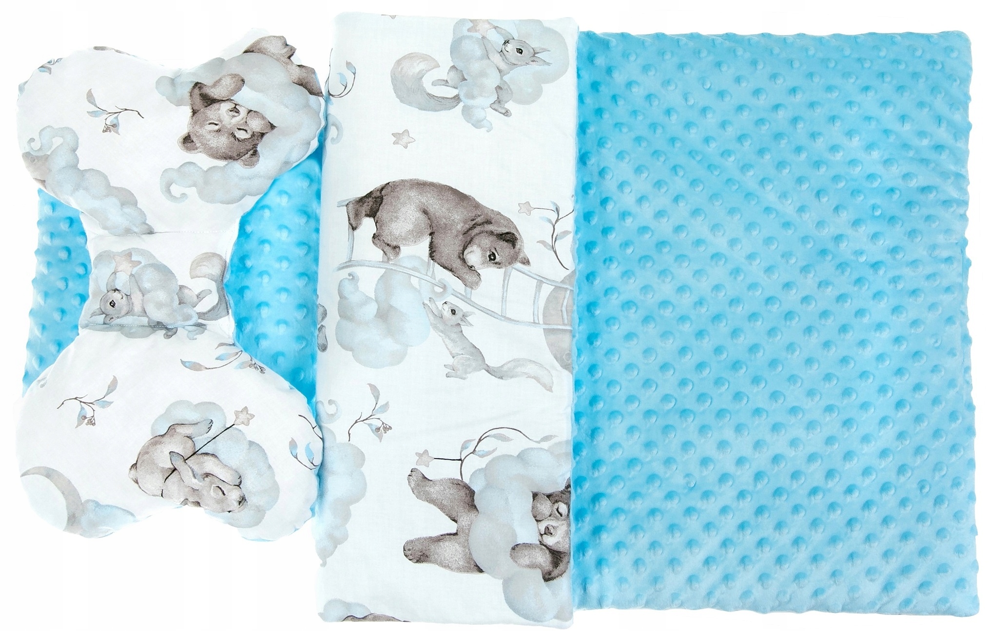 Все элементы комплекта двусторонние, с одной стороны мягкий материал норка, а с другой хлопковый узор.