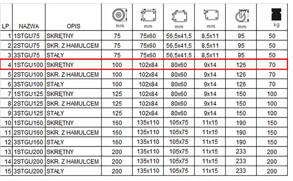НАБОР 4 ШТ. КОЛЕСА фи 100, тележка, книжный шкаф 1СТГУ100