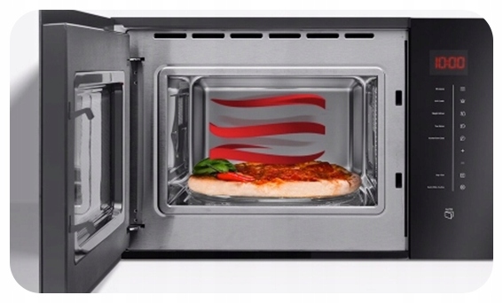 Внутренняя часть микроволновой печи Amica всегда хорошо освещена – для полного контроля над разогреваемым блюдом.