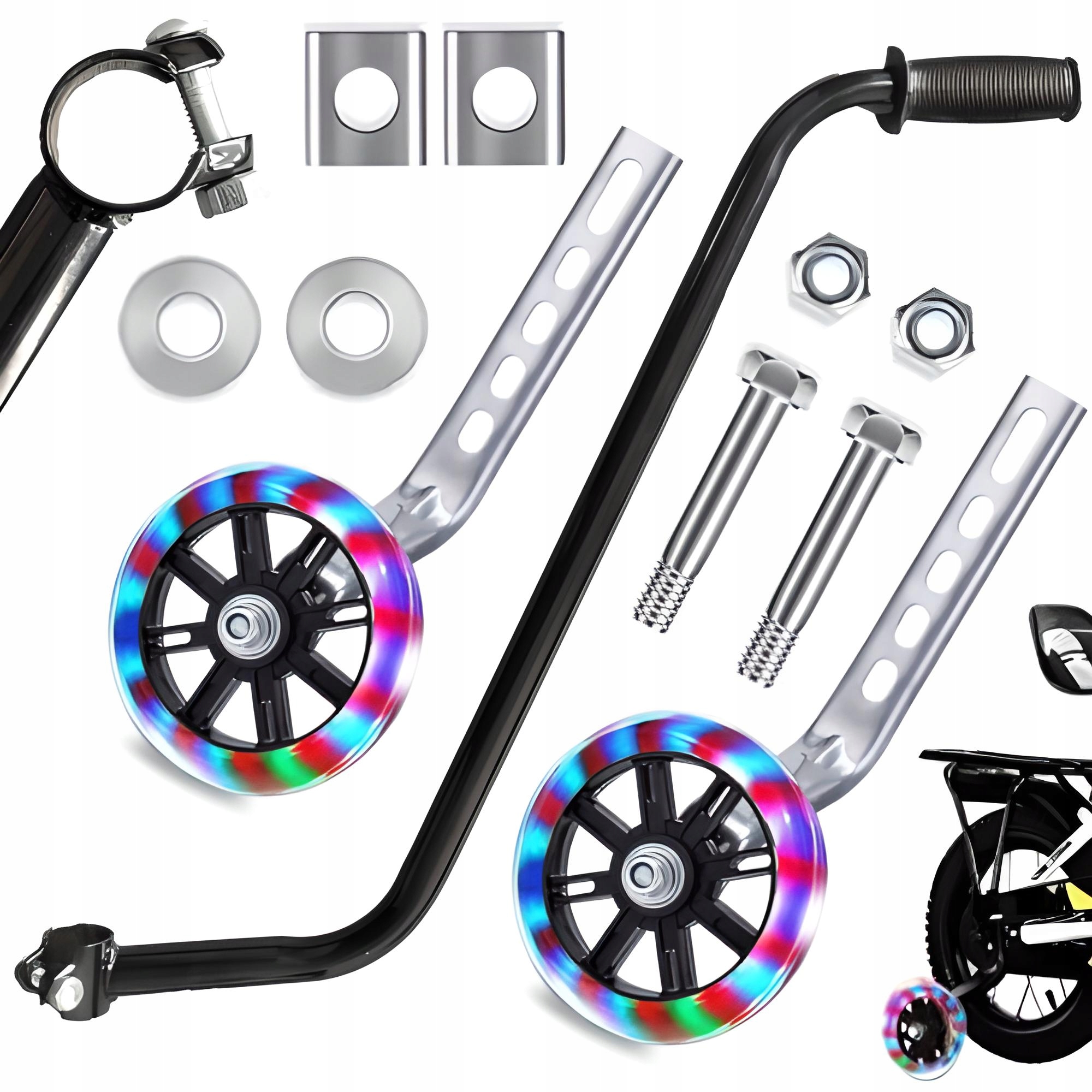 НАБОР СВЕТОДИОДНЫХ БОКОВЫХ КОЛЕС ДЛЯ ВЕЛОСИПЕДА 12-20" + НАПРАВЛЯЮЩАЯ ПУШЕР ВЕЛОСИПЕДДЕРЖАТЕЛЬ