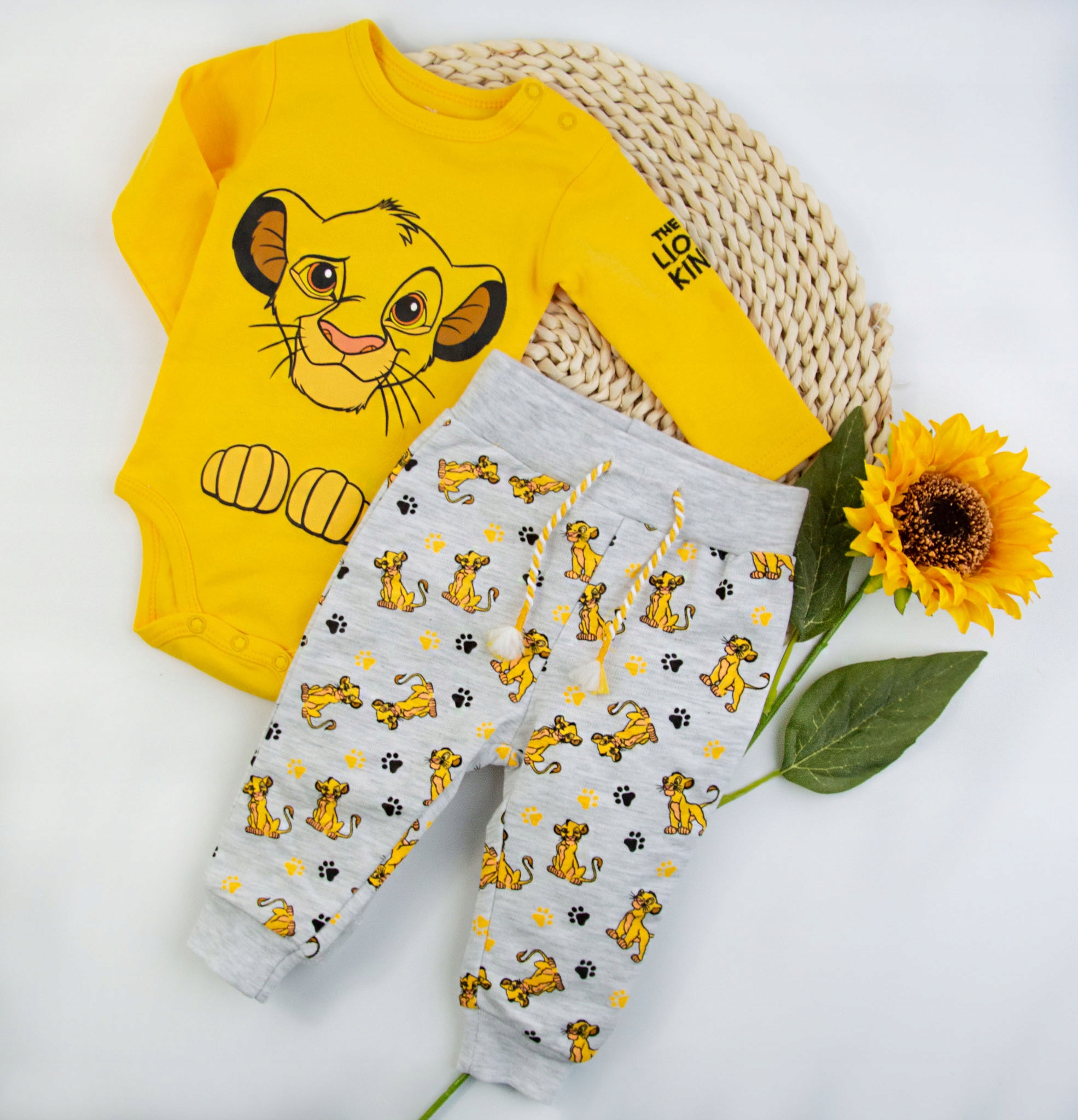 ДЕТСКИЙ КОМПЛЕКТ, боди с длинными рукавами и спортивные штаны с изображением Симбы - героя сказки Король Лев