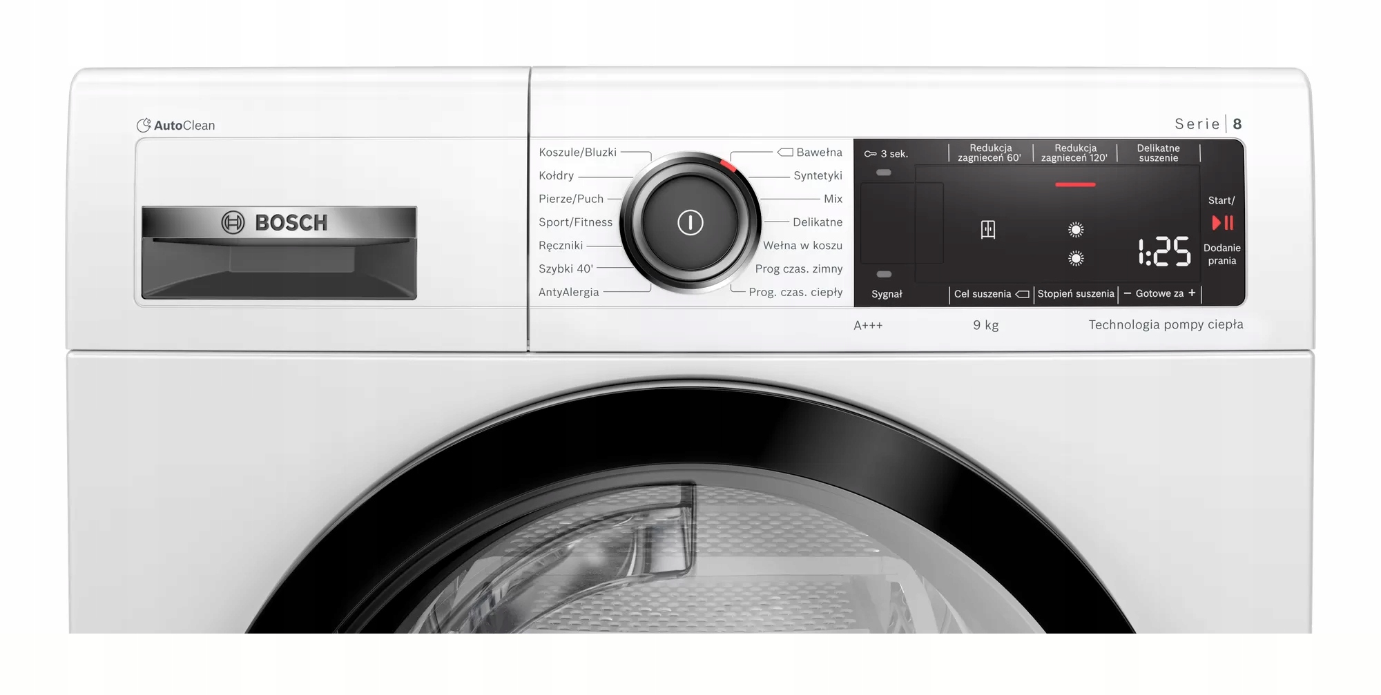 - AutoClean — постоянная эффективность процесса сушки благодаря автоматической очистке теплообменника и отсутствию необходимости очищать фильтр на дверце после каждой сушки.