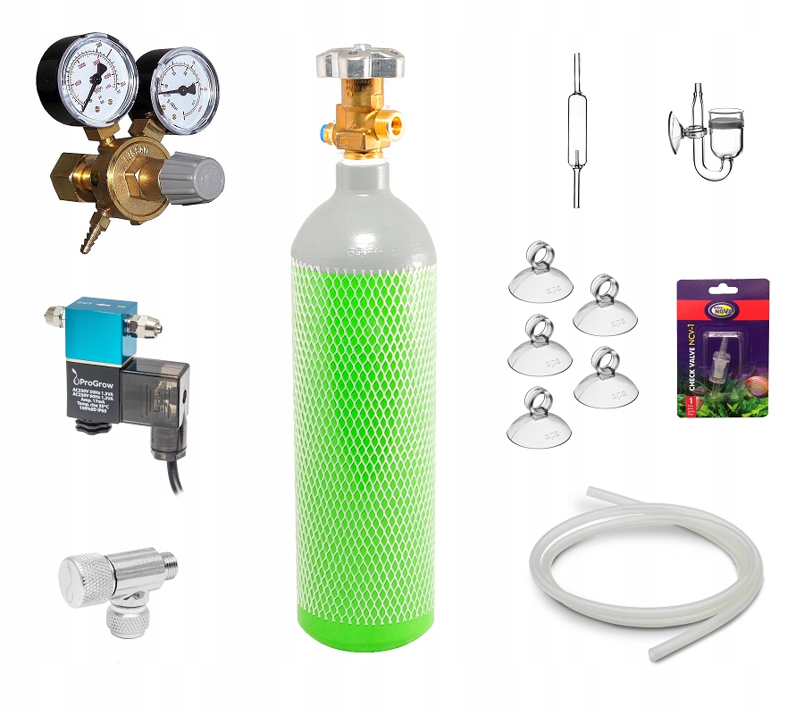 Это полностью оборудованный комплект, предназначенный для дозирования углекислого газа (CO2) в аквариумах с растениями. В комплект входит: