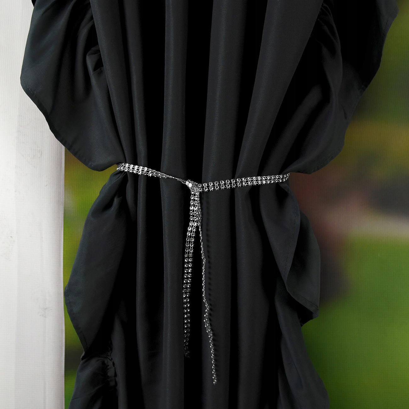 Декоративная полоса со стразами является центральной точкой композиции, что придает шторам тонкое сияние и роскошный вид. Стразы, сияющие на свету, создают эффектный декор, придавая интерьеру элегантности. Полоска со стразами – привлекательная деталь, придающая шторам неповторимый характер.