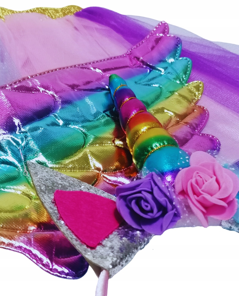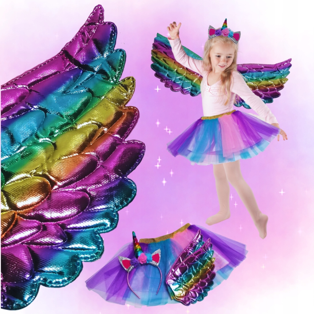КОМПЛЕКТ ЄДИНОРОГА СПІДНИЦЯ ПОВ'ЯЗКА НА ГОЛОВІ З КРИЛАМИ ВЕСЕЛКИ