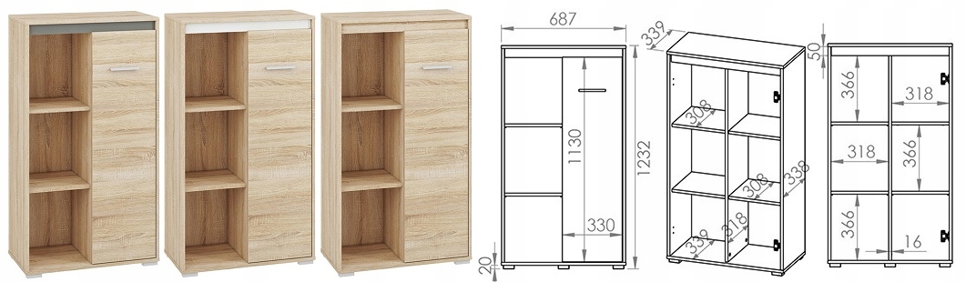 - книжный шкаф 06: 69 x 200 x 34 см.