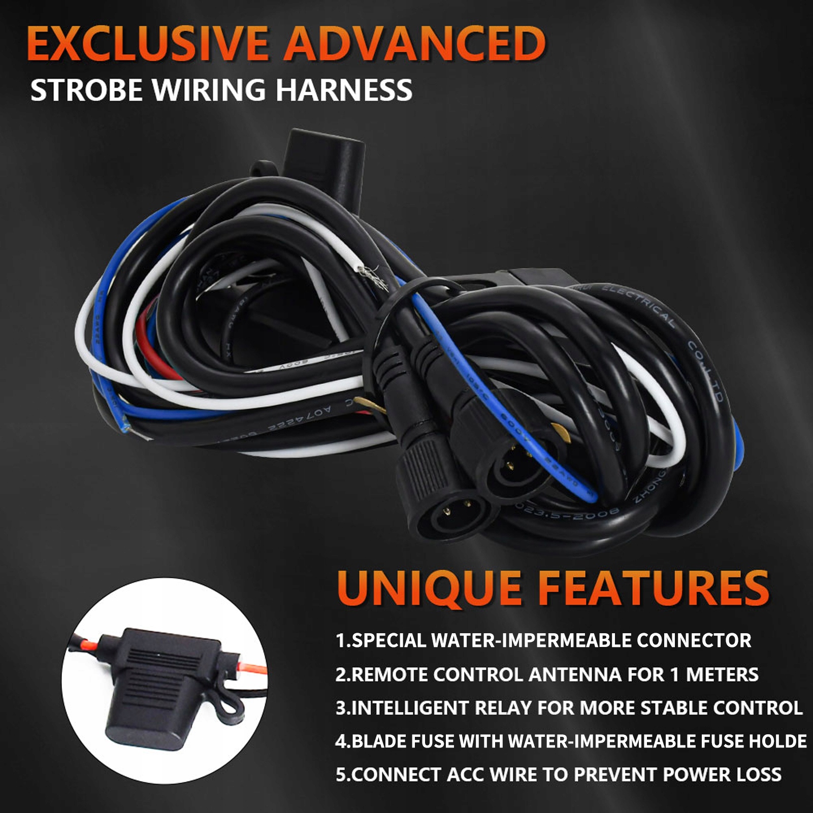 3. Улучшенные функции безопасности: включает в себя плавкий предохранитель в защитном держателе для безопасного управления питанием и линию ACC для предотвращения разрядки аккумулятора.